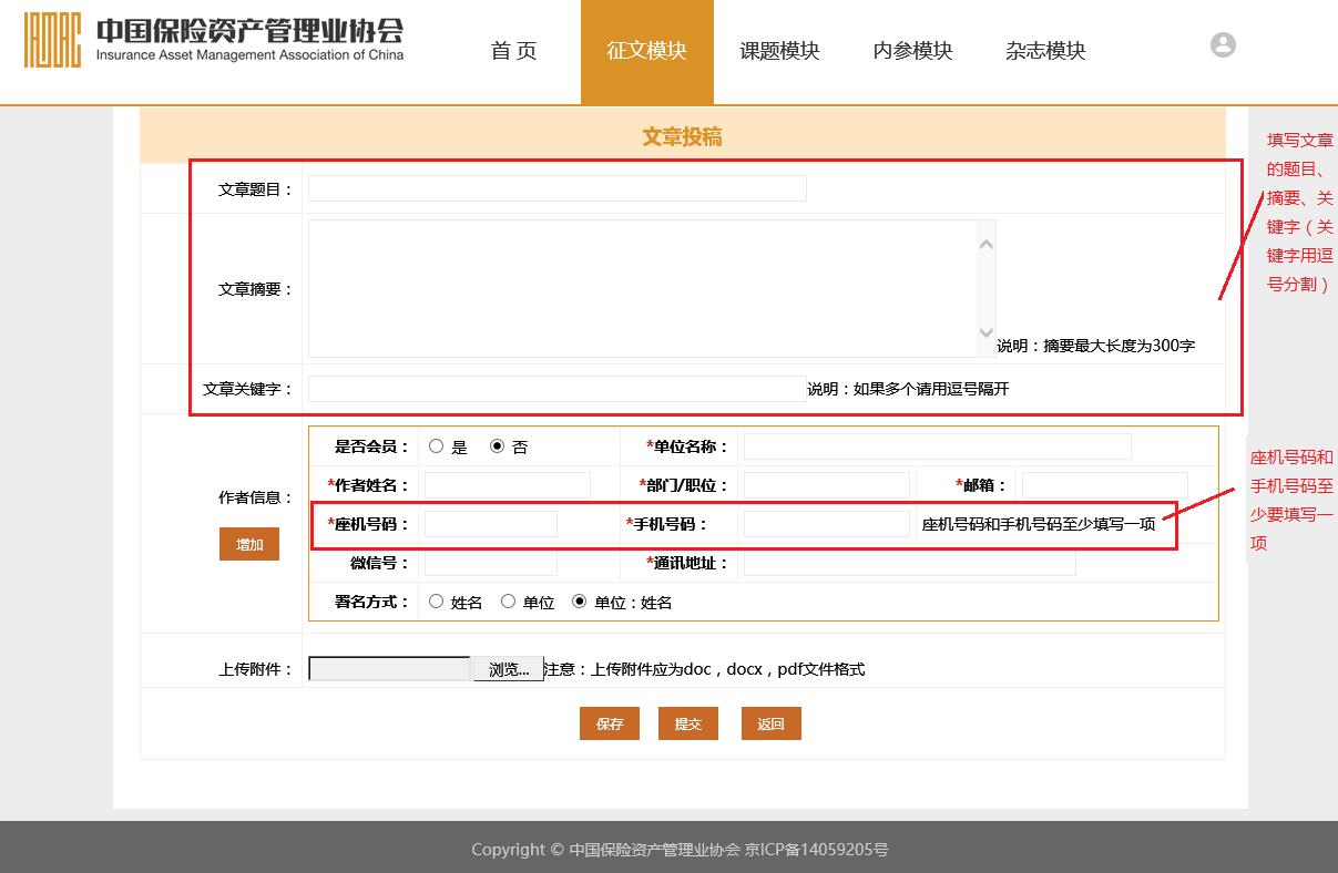 中國(guó)保險(xiǎn)資產(chǎn)管理業(yè)協(xié)會(huì)“征稿系統(tǒng)”征文模塊使用說(shuō)明