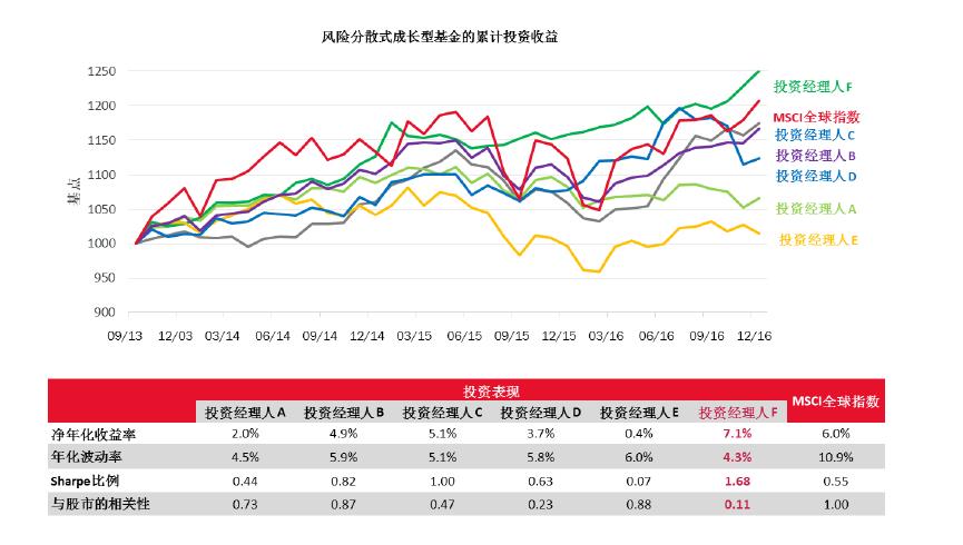 下面是一種多元資產(chǎn)配置策略下不同基金經(jīng)理歷年回報(bào)和風(fēng)險(xiǎn)指標(biāo),大家可以明顯的看出,不同的基金經(jīng)理在投資回報(bào)和風(fēng)險(xiǎn)控制上有非常明顯的區(qū)別。